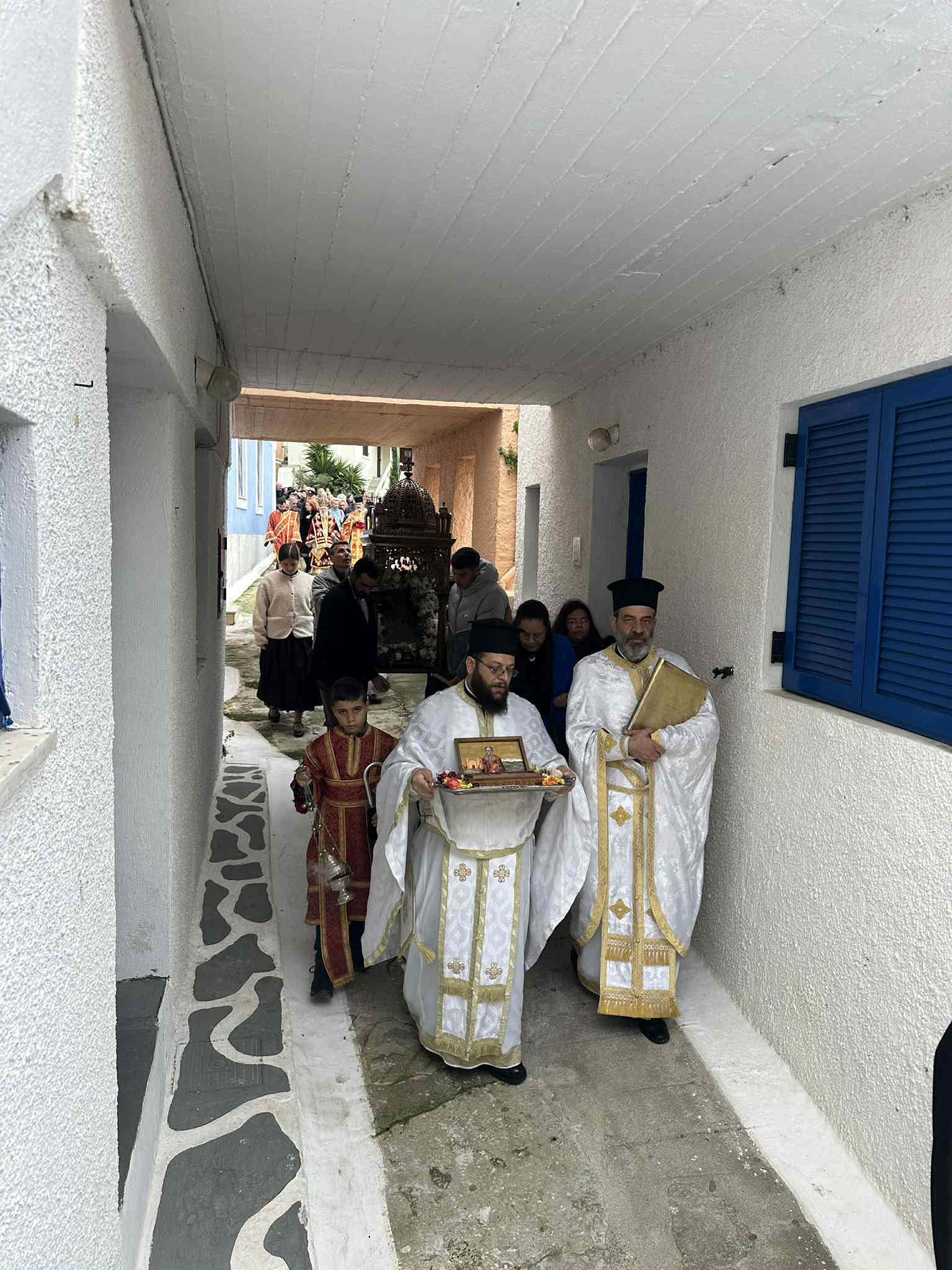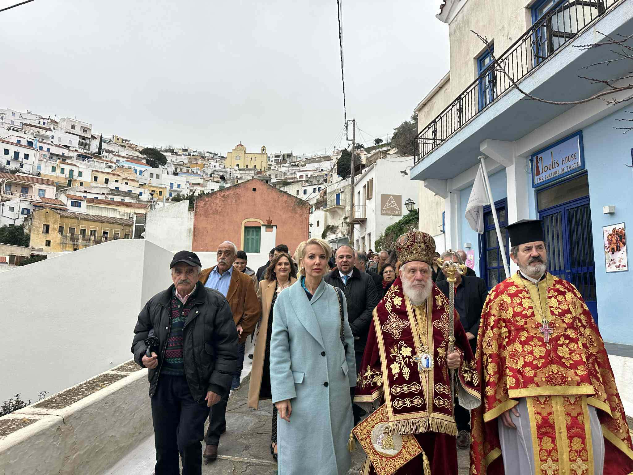 Στην εικόνα του Αγίου παραστάθηκαν, με παραδοσιακές στολές, μέλη του χορευτικού τμήματος του Συνδέσμου των Απανταχού Κειων, τιμώντας την τοπική παράδοση και ενισχύοντας το εορταστικό κλίμα.