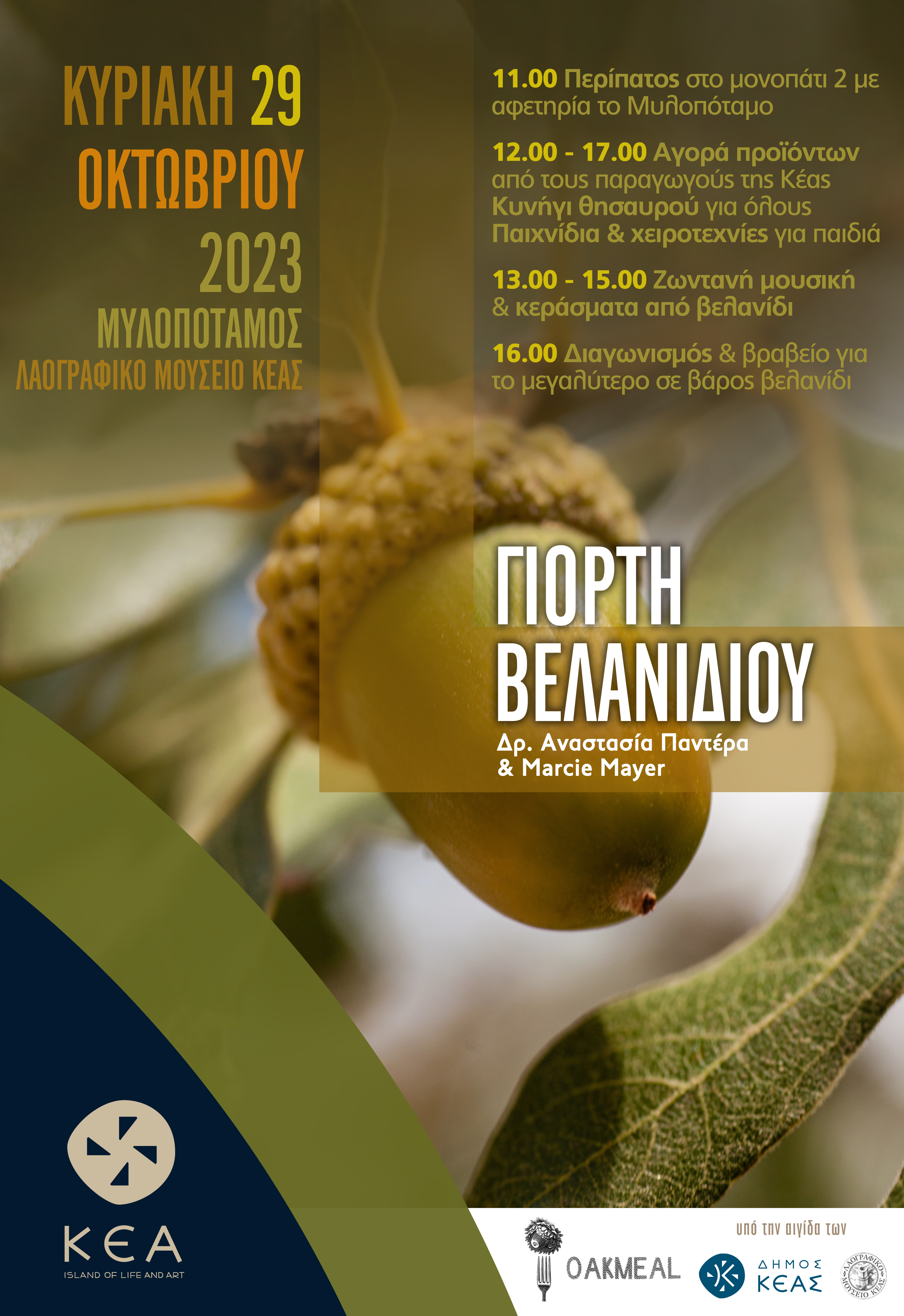 Στην Κέα διοργανώνεται και φέτος η Γιορτή Βελανιδιού! Αν και η πρώτη εντύπωση ενός επισκέπτης επισκέπτη της Τζιας σχετικά με τη χλωρίδα της, είναι ότι πρόκειται για ένα τυπικό Κυκλαδονήσι, στο εσωτερικό του νησιού θα συναντήσει μεγαλόπρεπα δάση με βελανιδιές, από τα ελάχιστα που έχουν απομείνει στο Αιγαίο και που σήμερα προστατεύονται.