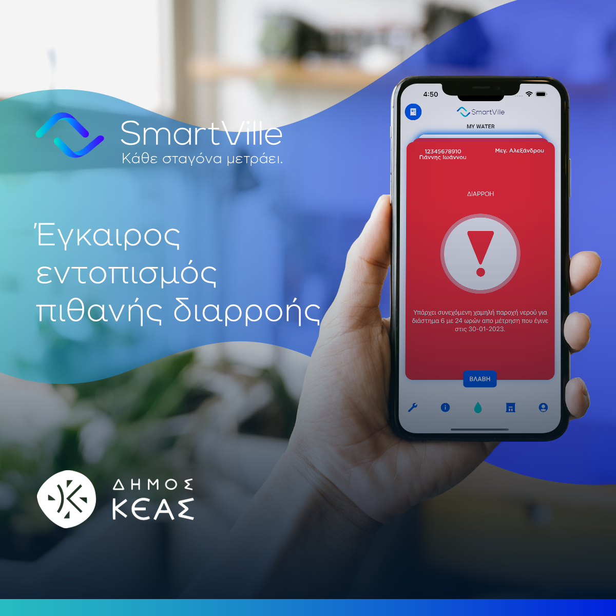 Με το My SmartVille, πλέον έχετε τον έλεγχο του νερού στο χέρι σας. Μάθετε περισσότερα στην ιστοσελίδα μας https://kea.gr/ και στο https://my.smartville.gr/.