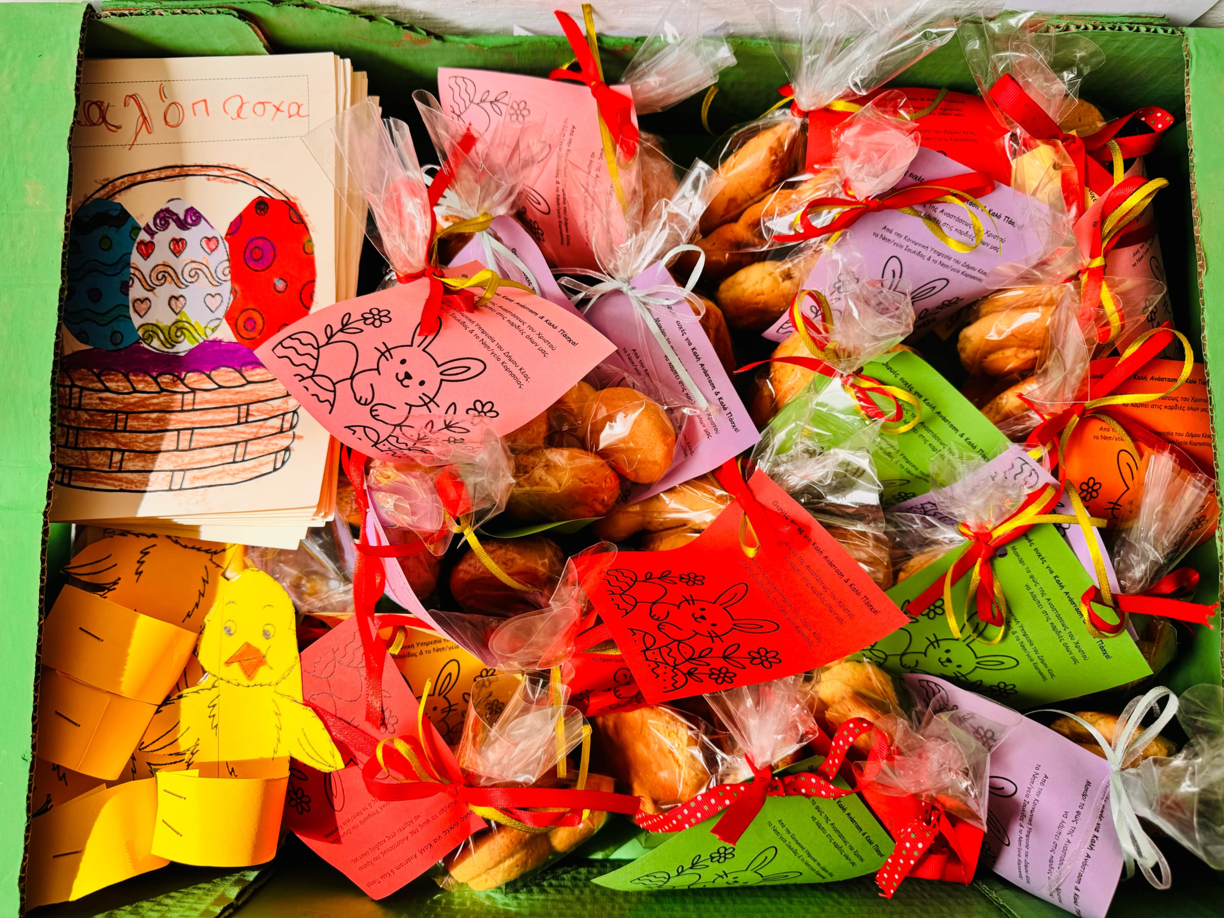 Η Κοινωνική Υπηρεσία του Δήμου Κέας φέτος, με τη βοήθεια των μαθητών των Νηπιαγωγείων Ιουλίδας και Κορησσίας, στο πλαίσιο της φροντίδας των ευάλωτων συνανθρώπων μας και του προγράμματος «Βοήθεια στο Σπίτι» έφτιαξε και συσκεύασε πασχαλινά κουλουράκια. Μαζί με κάρτες που ζωγράφισαν τα παιδιά, χειροτεχνίες που έφτιαξαν, αλλά και κόκκινα αυγά, τα διένειμε σε ηλικιωμένους και άτομα με χρόνια προβλήματα υγείας του νησιού μας. Η ανταπόκριση και οι ευχές τους ήταν συγκινητικές.