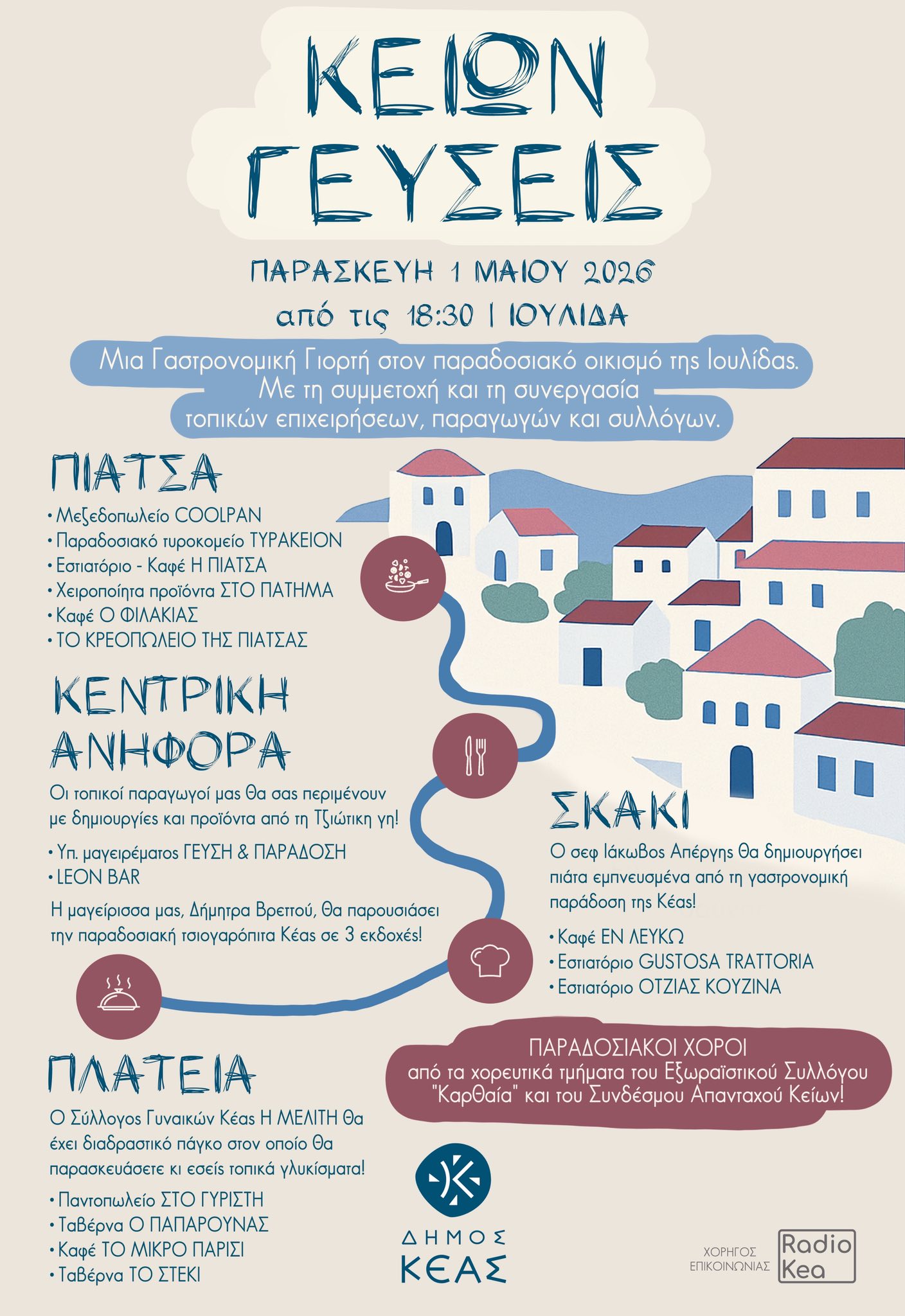 Το τριήμερο της Πρωτομαγιάς, η Κέα υποδέχεται κατοίκους και επισκέπτες με ένα πλούσιο πρόγραμμα εκδηλώσεων που αναδεικνύει την τοπική παράδοση, τη γαστρονομία και τον πολιτισμό του νησιού